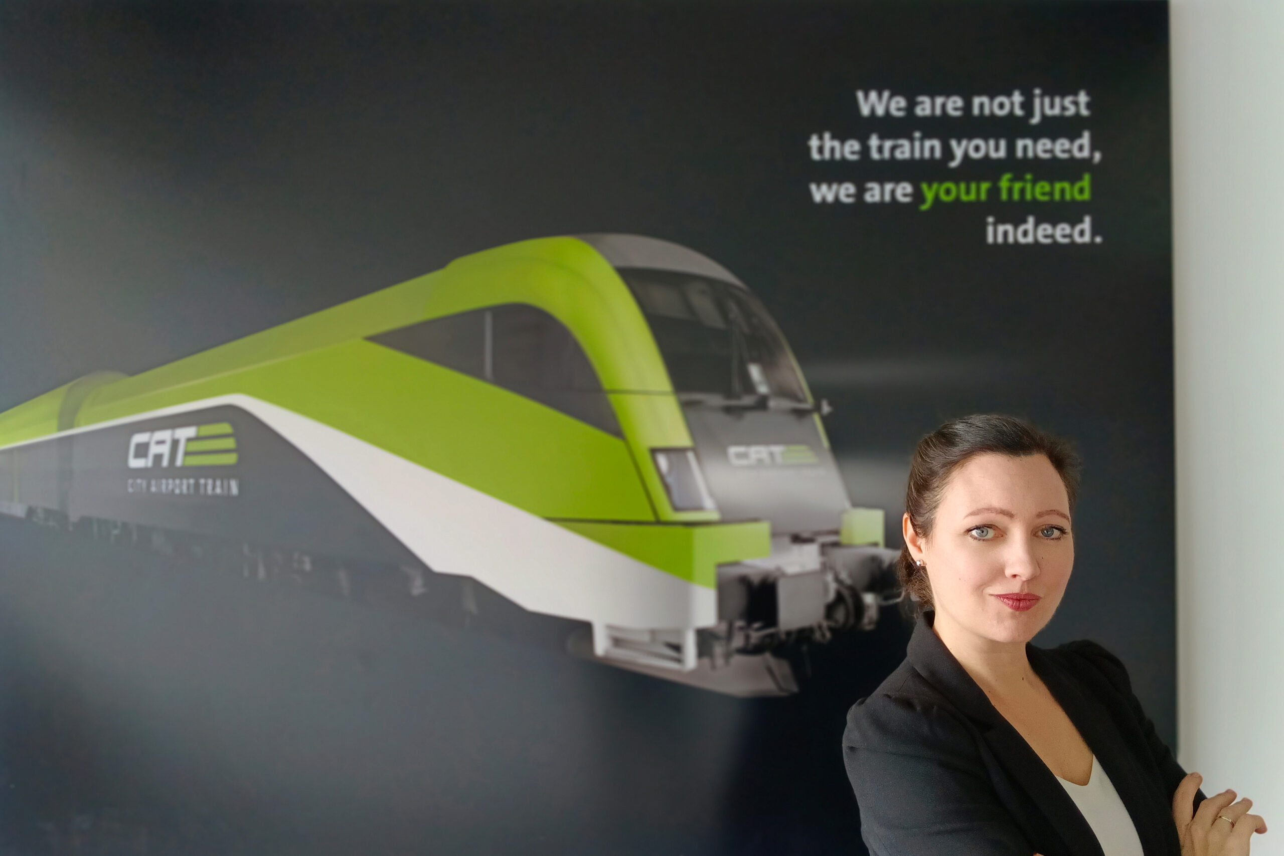 Seit mehr als einem Jahrzehnt bringt sie die Botschaft des City Airport Train auf den Punkt.